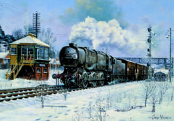 Blank Card x 1 with envelope: Wintry Morning at Swaythling Signal Box with Q1 No. 3301 in the Snow